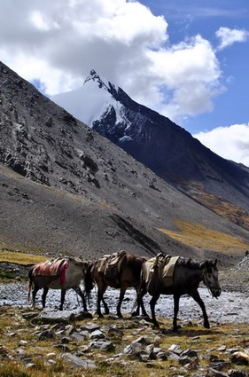 Il monastero di Kangbu posto a 4900 metri al cospetto del versante sud est del Nojin Kangsang